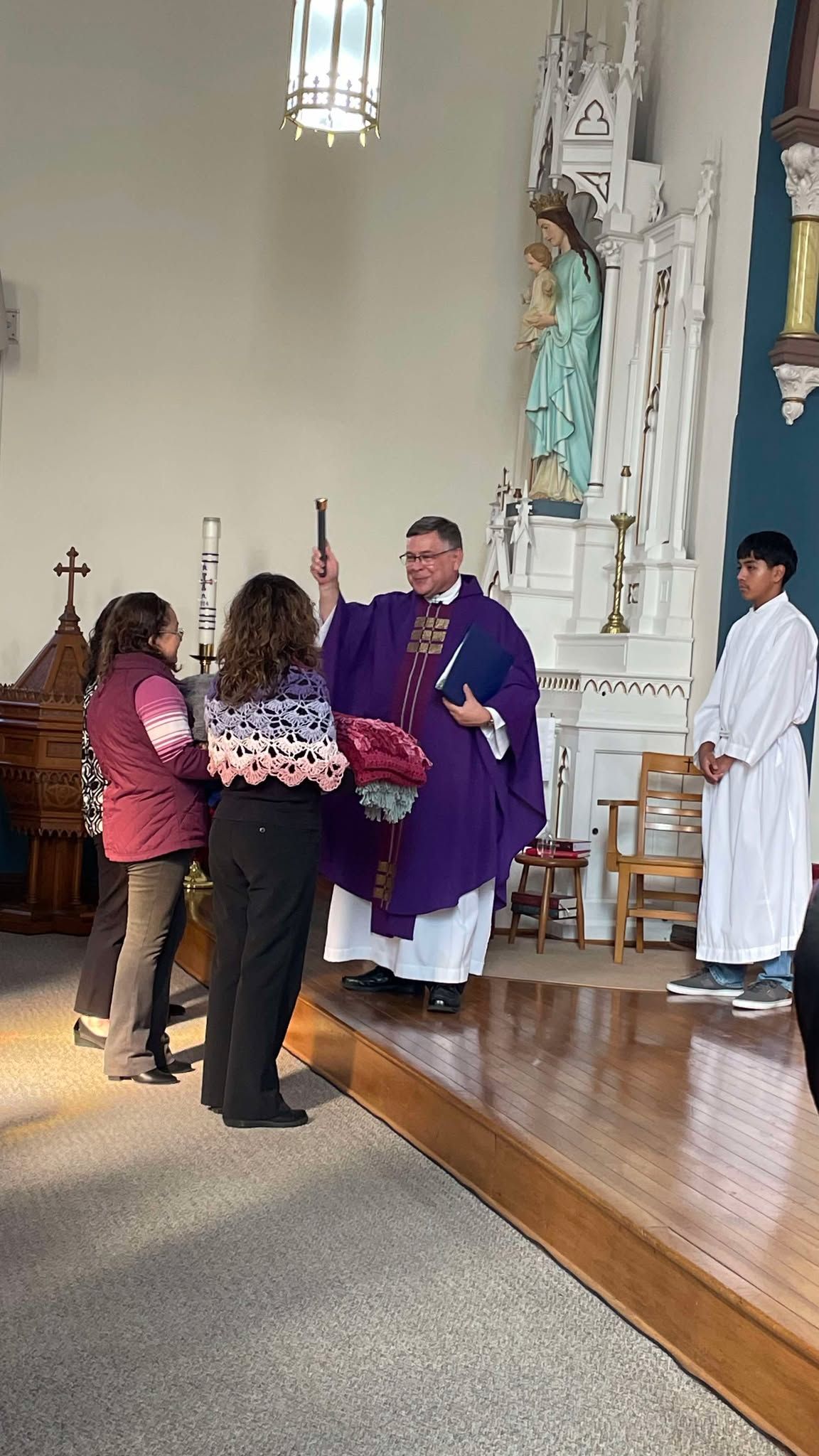 Ministry coordinators, Kay Melton and Kitty Lewis work with the parish office staff to receive names, bless the shawls, and deliver shawls through the Eucharistic Ministers. Names also come to the ministry through word of mouth.