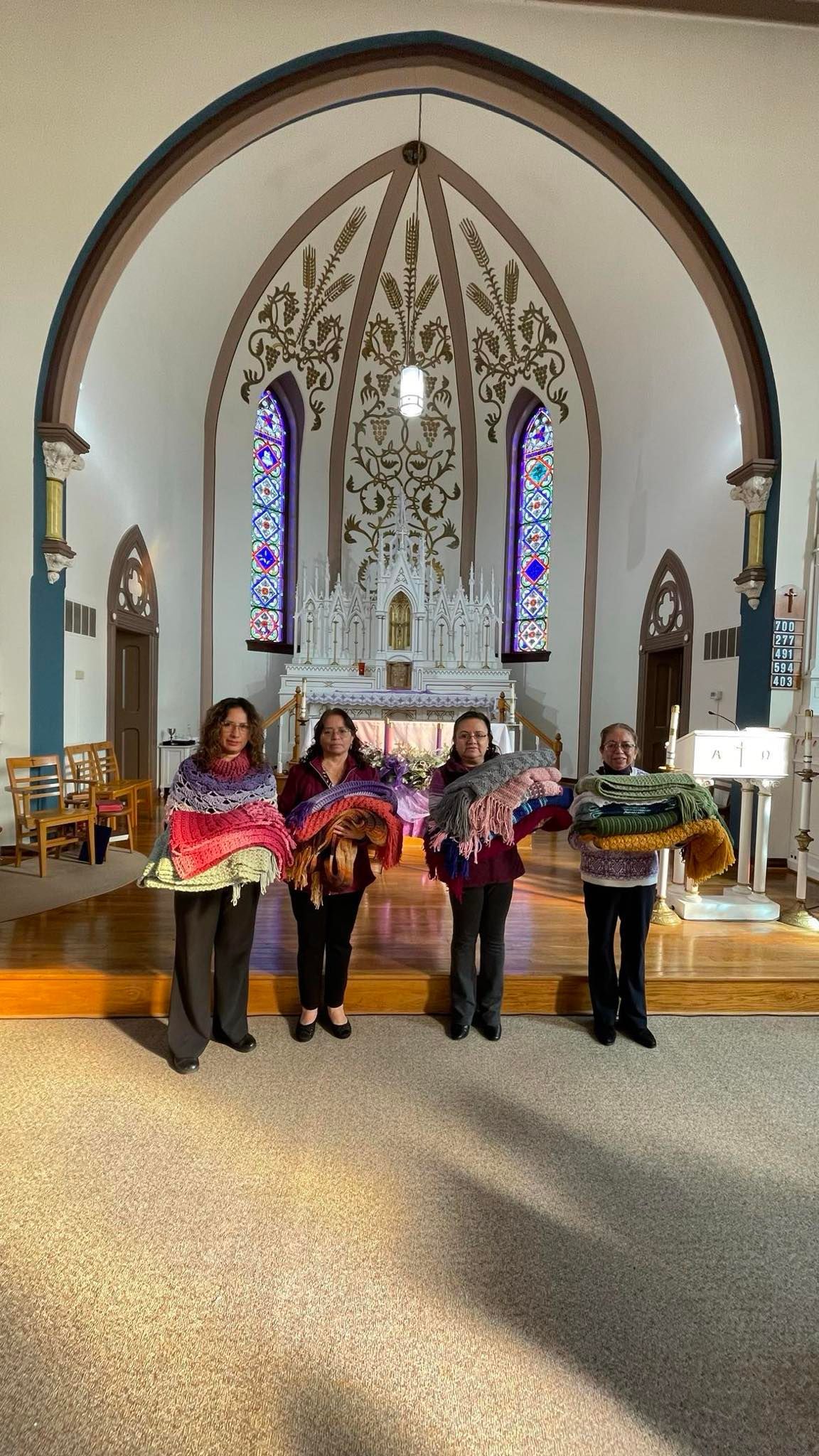 The Hispanic group with coordinator, Teresa Morales (812-530-6984), meets each Tuesday from 10:00 am – 12:30 pm in the downstairs meeting room in the parish center. Other knitters in the ministry knit at home.